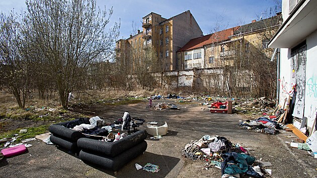 Pavlačový dům v Jateční ulici býval pro většinu obyvatel poslední štací, než kvůli neplacení nájmu skončili na ulici. Teď je už kompletně vystěhovaný, vchody i okna ve spodních patrech jsou zazděné nebo jinak zabezpečené, aby dovnitř nikdo nevlezl a nesnažil se tam načerno přebývat. Dům čeká demolice.