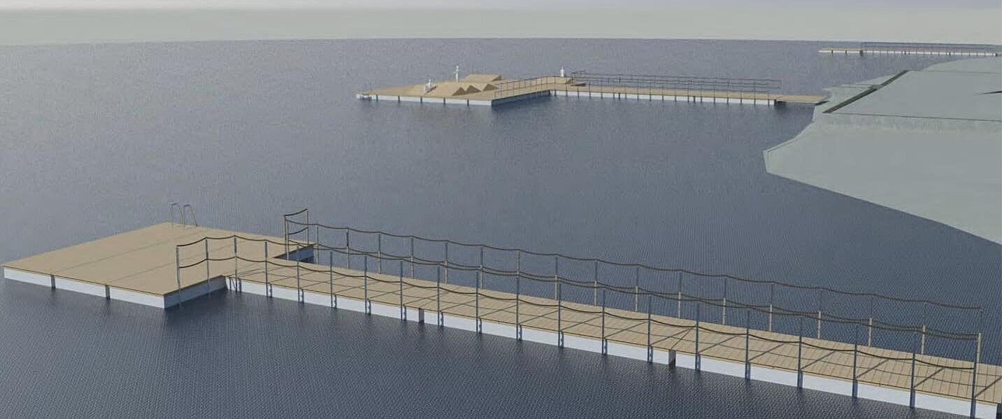 Vizualizace podob nových mol, které chce město Plzeň do léta vybudovat u pláže Ostende Boleveckého rybníka.