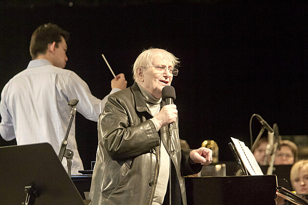 Plzeňský rodák Jiří Suchý a Jitka Molavcová vystoupili v Měšťanské besedě v Plzni v rámci cross-over koncertu Plzeňské filharmonie. (21. 10. 2021)