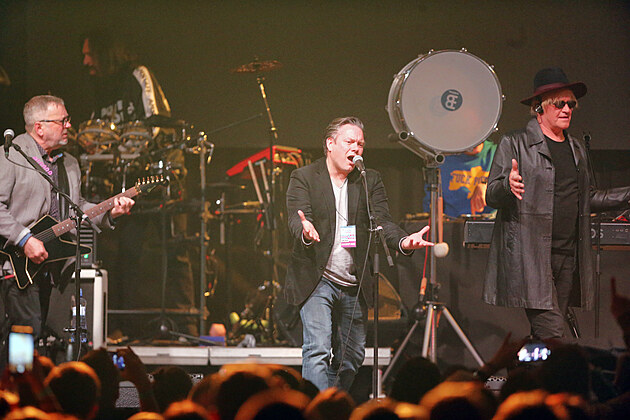 Třicátý ročník slavnostního udílení hudebních cen Žebřík. Uprostřed na snímku Matěj Ruppert (1. dubna 2022)
