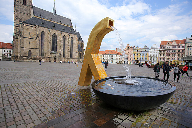 Kašny na náměstí Republiky v Plzni začaly po zimní odmlce opět chrlit vodu. (2. 5. 2022)