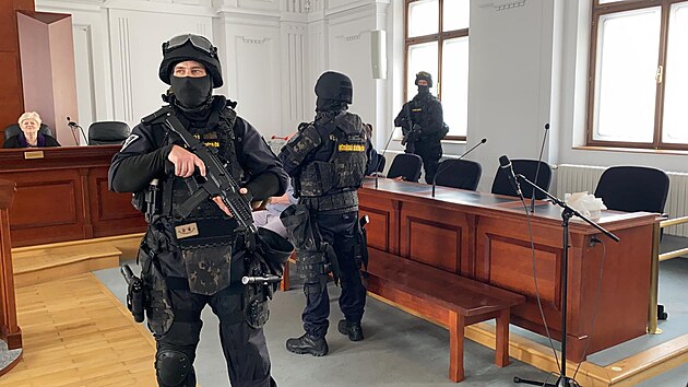 Doživotně odsouzeného vraha Josefa Kotta přivedla do soudní síně Krajského soudu v Plzni ozbrojená eskorta. (29. března 2022)