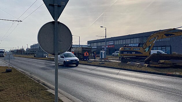 Prázdno. Tak to vypadalo v úterý ráno na kruhovém objezdu u Makra v Plzni. Po pondělním dopravním kolapsu se řidiči rozhodli vyhnout se místu velkým obloukem. (4. března 2025)