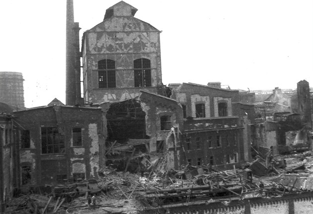 Plzeň po náletu 25. dubna 1945. Škodovka, která tehdy patřila k nejvýznamnějším zbrojovkám třetí říše, byla po zásahu bomb v troskách.