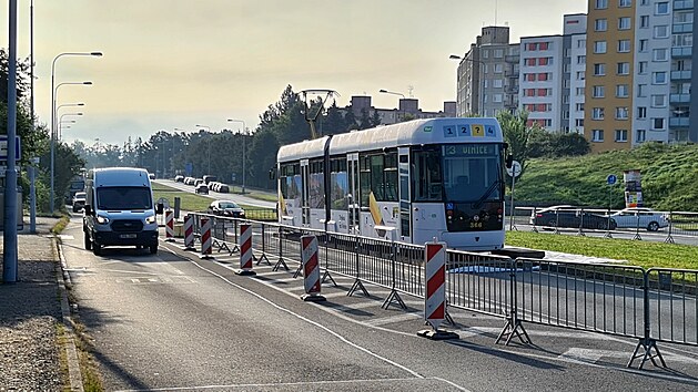Projekt tramvajové trati na plzeňské sídliště Vinice propaguje neobvykle Správa veřejného statku města Plzně usazením tramvaje do míst, kde by jednou měla kolejová doprava sloužit. (14. 9. 2021)