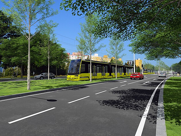 Vizualizace trati u zastávky Amfiteátr v ulici Na Chmelnicích