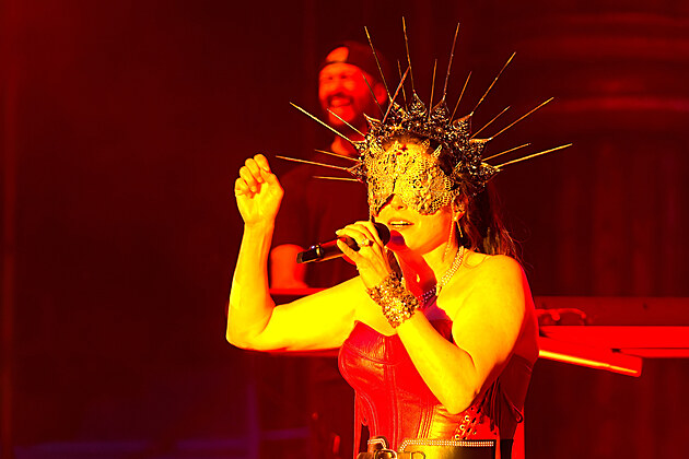 Lochotínský amfiteátr hostil 14. ročník Metalfestu. Na snímku zrovna vystupuje kapela Within Temptation. (6. června 2025)