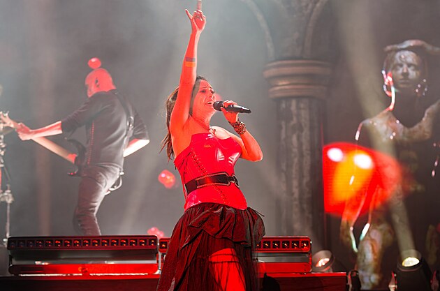 Lochotínský amfiteátr hostil 14. ročník Metalfestu. Na snímku zrovna vystupuje kapela Within Temptation. (6. června 2025)