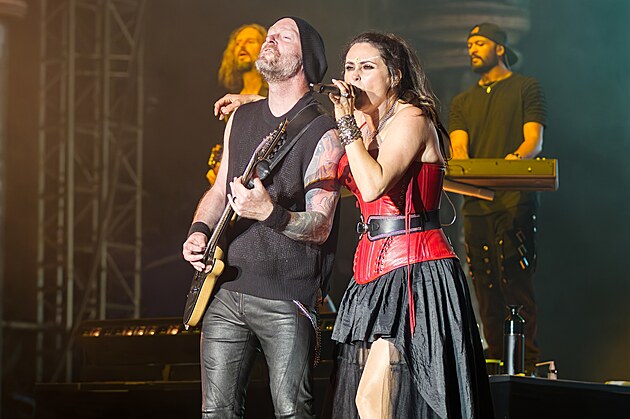 Lochotínský amfiteátr hostil 14. ročník Metalfestu. Na snímku zrovna vystupuje kapela Within Temptation. (6. června 2025)