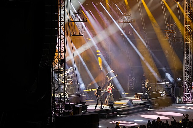 Lochotínský amfiteátr hostil 14. ročník Metalfestu. Na snímku zrovna vystupuje kapela Within Temptation. (6. června 2025)