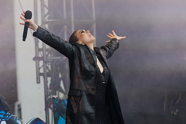 Lochotínský amfiteátr hostil 14. ročník Metalfestu. Na snímku zrovna vystupuje kapela Amaranthe. (7. června 2025)
