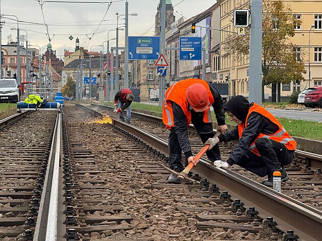 Až do konce března příštího roku budou místo tramvají jezdit na Skvrňany autobusy. V pondělí 13. října totiž začala rozsáhlá rekonstrukce kolejiště. (13. října 2025)