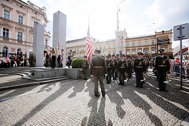 Pietním aktem u památníku Díky, Ameriko! Plzeňané uctili 78. výročí osvobození americkou armádou. (6. 5. 2023)