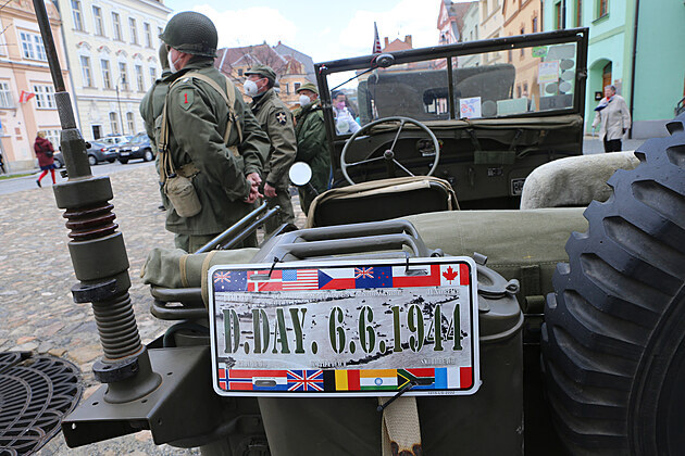 Příznivci amerických vojenských aut z období druhé světové války přijeli do Plané na Tachovsku uctít památku padlých vojáků. (5. 5. 2021)