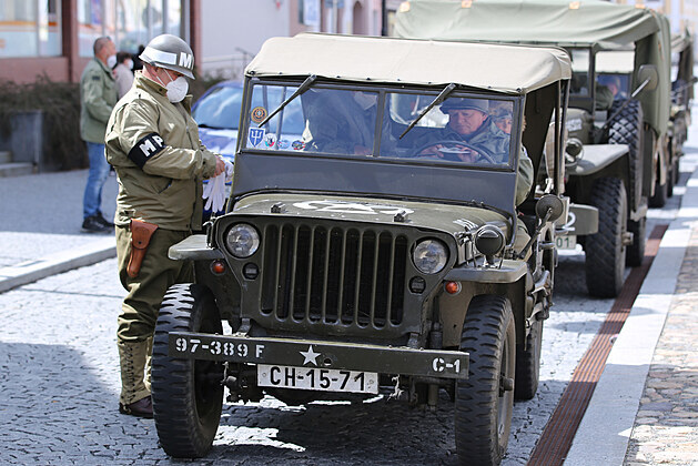 Příznivci amerických vojenských aut z období druhé světové války přijeli do Plané na Tachovsku uctít památku padlých vojáků. (5. 5. 2021)