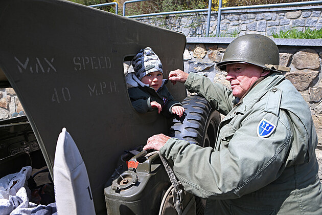 Příznivci amerických vojenských aut z období druhé světové války přijeli do Plané na Tachovsku uctít památku padlých vojáků. (5. 5. 2021)