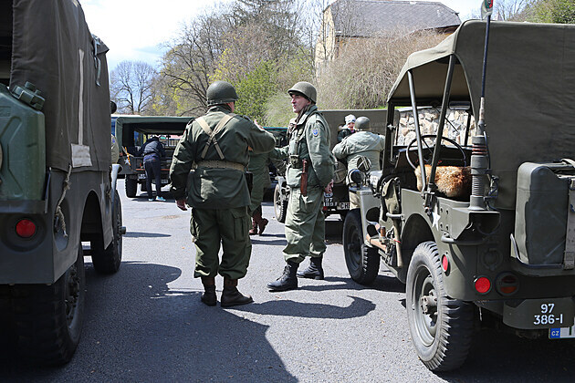 Příznivci amerických vojenských aut z období druhé světové války přijeli do Plané na Tachovsku uctít památku padlých vojáků. (5. 5. 2021)