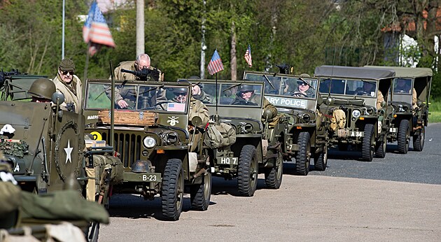 Členové veterán car clubu 3. armády vyrážejí v rámci Slavností svobody na jízdu po pietních aktech v jihozápadních Čechách. (4. 5. 2023)