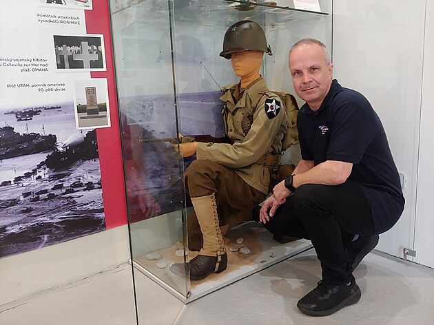 Šéf muzea generála Pattona Ivan Rollinger představil figurínu v dobové uniformě s proslulou nášivkou s hlavou indiána.