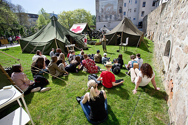 Kempy vojenských historických klubů v centru Plzně. Slavnosti svobody začaly. (5. 5. 2023)