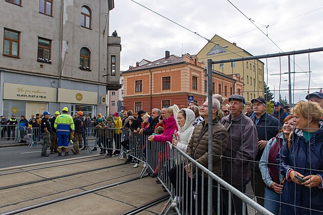 Nevšední podívaná. Stovky lidí se přišly podívat na to, jak se tank Sherman proletí nad Plzní. (11. října 2025)
