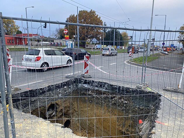 V Plzni na Rokycanské ulici se pokládá vodovodní potrubí pro dva nové velké zásobníky. (24. října 2024)