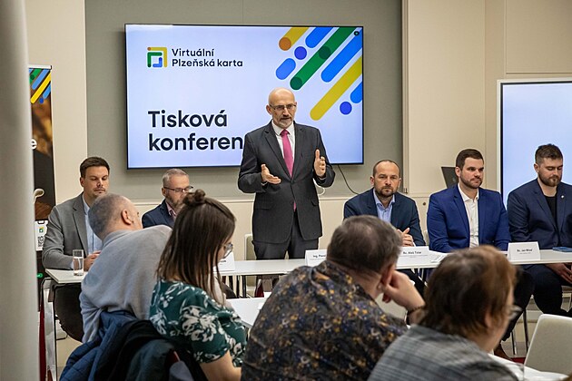 Virtuální kartu Plzeňského kraje využívají cestující již několik let. Nová verze jim nabízí více funkcí a má být uživatelsky přívětivá a intuitivní. Na snímku hovoří náměstek hejtmana pro dopravu Pavel Čížek. (13. března 2025)