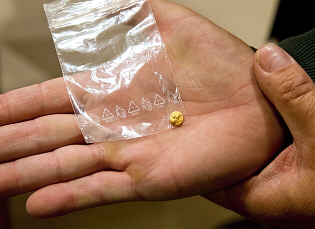 Archeolog David Daněček se zlatou mincí - osminou stateru. (25. září 2025)