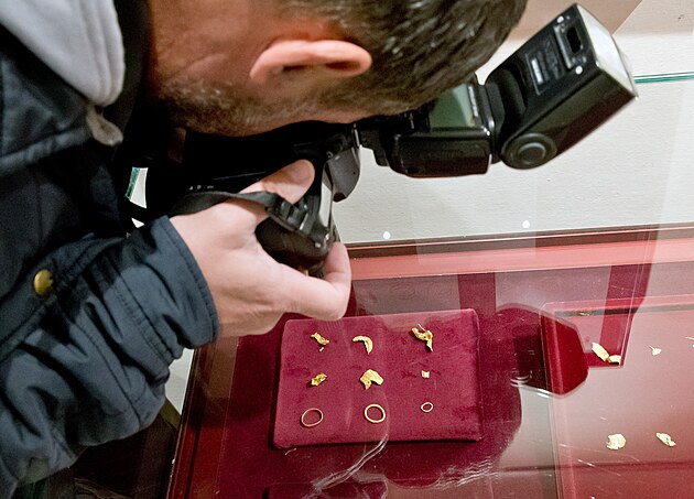 Archeologové představili nálezy keltských mincí a dalších předmětů z dosud utajovaného místa na severním Plzeňsku. Na snímku úlomky náučnic a prsteny. (25. září 2025)