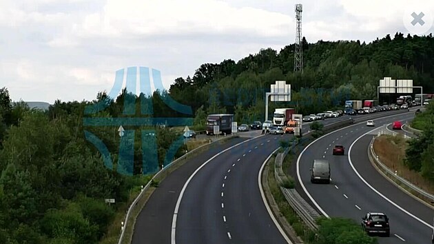 Kolona po tragické nehodě kamionů na D5 (24. července 2024)