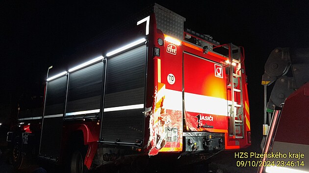Do hasičského vozidla, které likvidovalo olej z nákladního auta, narazilo na dálnici D5 osobní auto. Jeho řidič zemřel na místě, druhý člověk je v kritickém stavu. (9. října 2024)