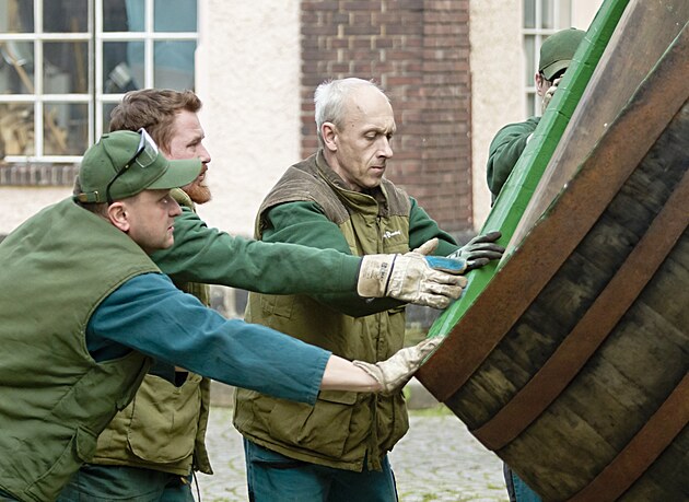 Bednáři z Plzeňského Prazdroje smolili velké ležácké sudy. (18. 10. 2022)