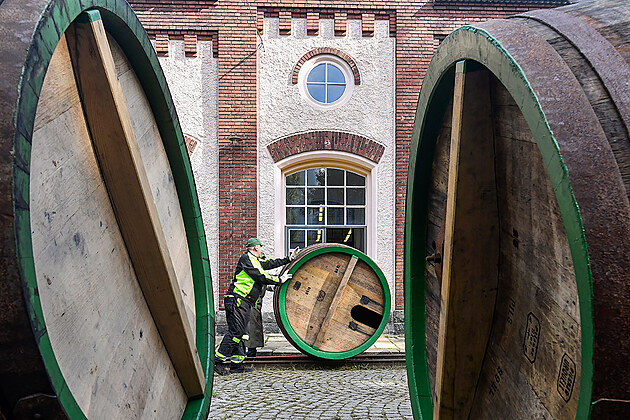 Tradiční podzimní smolení sudů v Plzeňském Prazdroji, ležák Pilsner Urquell v nich zraje stejně jako před téměř 183 lety. (9. září 2025)