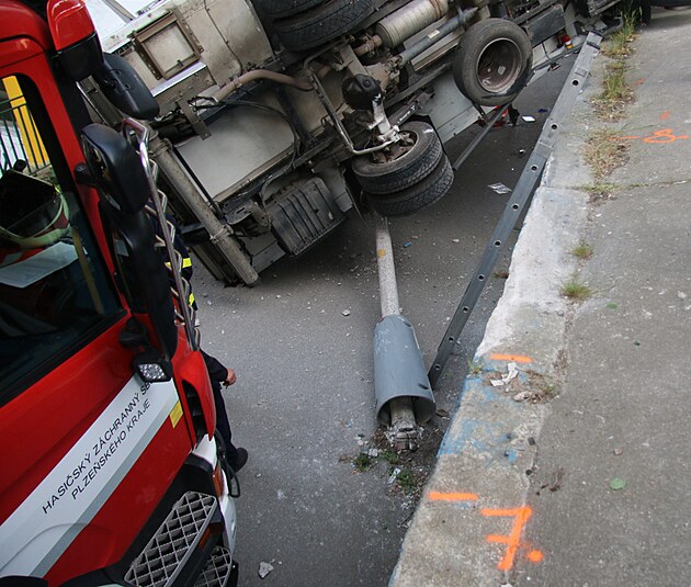 Řidič na Anglickém nábřeží zdemoloval značky i zaparkované auto. Skončil pod viaduktem.