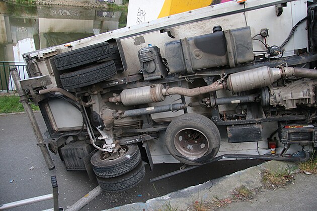 Řidič na Anglickém nábřeží zdemoloval značky i zaparkované auto. Skončil pod viaduktem.