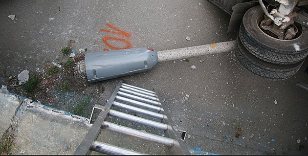 Řidič na Anglickém nábřeží zdemoloval značky i zaparkované auto. Skončil pod viaduktem.