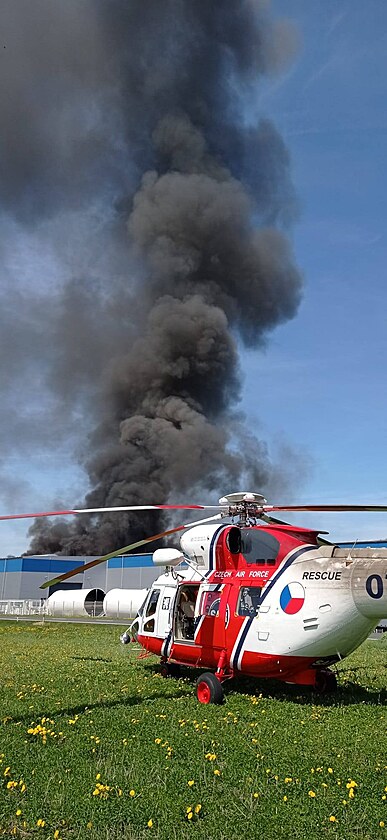 Požár lakovny v Chodové Plané na Tachovsku očima leteckých záchranářů. (28. dubna 2025)
