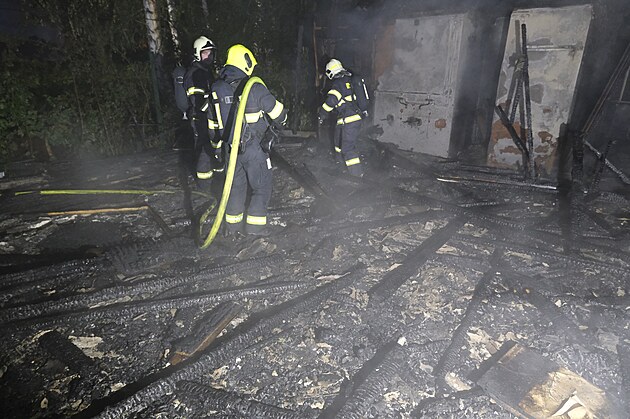 Objekt v Plzni u parkovacího domu Rychtářka, který nelegálně využívali bezdomovci, lehl popelem. (26. května 2025)