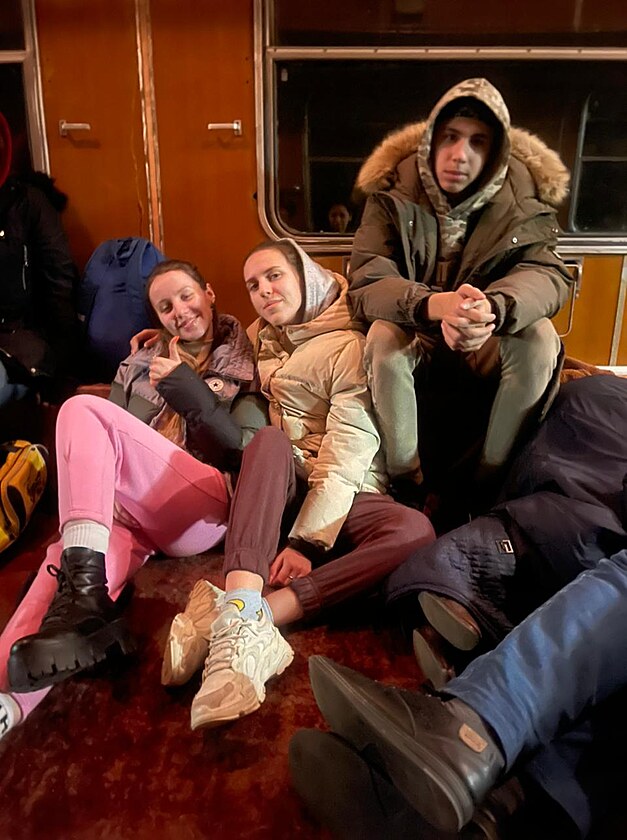 Útěk z Ukrajiny do Čech, jak jej zaznamenala manželka kyjevského pediatra Anastasie Demydova. Cesta vlakem. (4. března 2022)