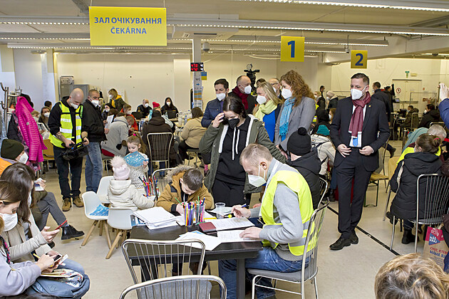 Americká chargé d affaires v ČR Jennifer Bachusová navštívila Krajské asistenční centrum pomoci Ukrajině v Plzni v bývalém obchodním domě Prior. (8. 3. 2022)