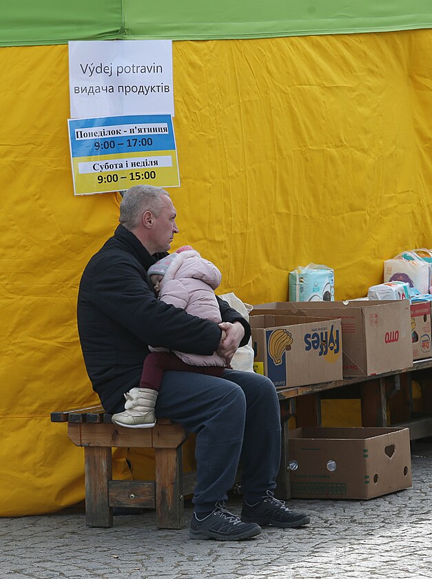 Potravinové balíčky jsou k dispozici ukrajinským uprchlíkům v humanitárním skladu Diecézní charity Plzeňv Cukrovarské ulici. (14. 3. 2022)