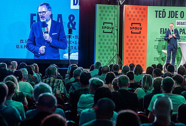 Premiér Petr Fiala na debatě v Pardubicích.