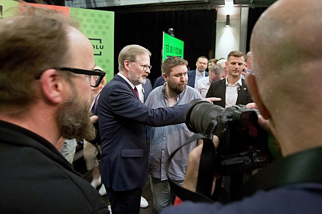Předvolební turné premiéra Petra Fialy s názvem Teď jde o všechno! moderovaný Ivou Pazderkovou při zastávce v Plzni, v bývalé budově nádraží Plzeň-Jižní Předměstí, nyní centrum Moving Station. (24. června 2025)