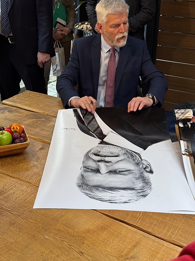 Prezident Petr Pavel a jeho choť Eva se v Bioptické laboratoři v Plzni podepisovali na plakáty. (25. března 2025)