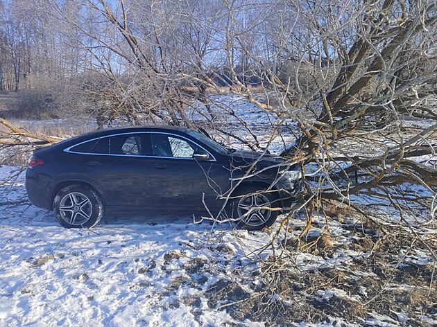Cizinec s kradeným autem naboural u Farského rybníku na Tachovsku a okamžitě od něj utekl. (20. února 2025)