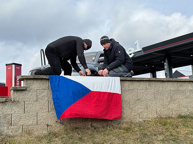Lidé se na hraničním přechodu s Německem ve Folmavě na Domažlicku připravují na příjezd protestujících zemědělců. (27. února 2025)