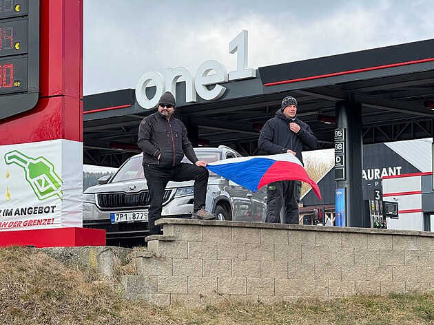 Lidé se na hraničním přechodu s Německem ve Folmavě na Domažlicku připravují na příjezd protestujících zemědělců. (27. února 2025)