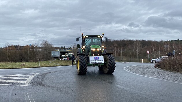 Kolona zemědělské techniky přijela i na okraj Plzně k obchodnímu centru. (22.února 2024)
