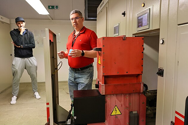 Šéf provozu měníren dopravních podniků v Plzni Petr Vracovský vedl prohlídky provozu měnírny a vodní elektrárny na Denisově nábřeží. (17. května 2025)