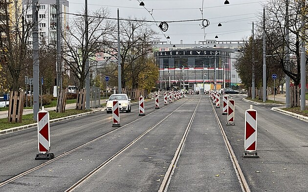 Stavbaři vpustili auta na část zrekonstruovaného úseku Koterovské ulice v Plzni. Oprava se zpožďuje, ani otevřený úsek není úplně dokončený. (12. listopadu 2024)